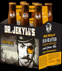 Beer Belly, a truly unique American Kölsch Style Ale — similar to the Früh style of Kölsch, where it is slightly sweeter and gently fruitier than a Pilsner or Pale Ale. Dr. Jekyll’s Beer Belly is refreshing and light and boasts the finest organic Perle and Cascade hops, along with the finest organic malts. Its complex flavors combine hints of raspberry and grapefruit along with aromatic notes of cardamom and coriander. Other super ingredients include acai berry, maqui berry, green tea, green coffee bean, raspberry ketone, and grapefruit fiber. This incredibly light yet full bodied refreshing craft beer will broaden your senses but not your waist line!beer-belly-gold-medal-winner-2015